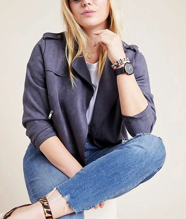 13 Reasons Why S04 Jessica Davis Grey Moto Jacket is of suede leather. The inner is of viscose lining, with lapel style collar, open front style, open hem cuffs, and two side zipper pockets. Along with remarkable performances, the outfits of this series are famous among our customers. Wanna have this? Shop it now by ordering it.