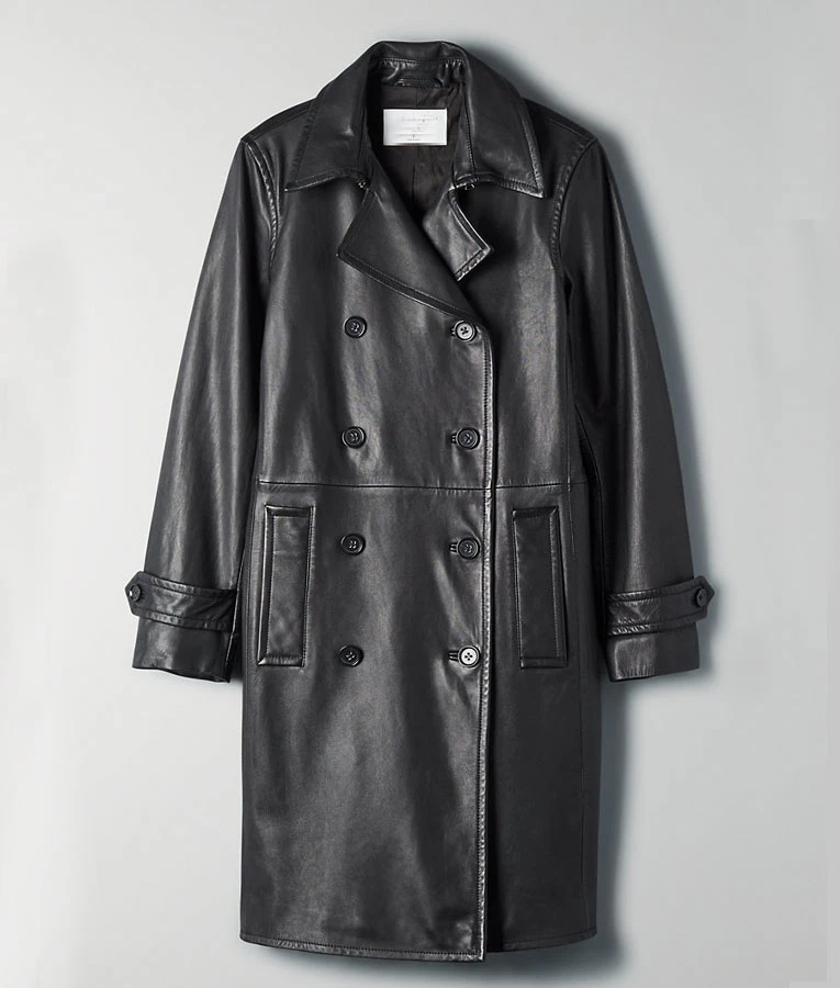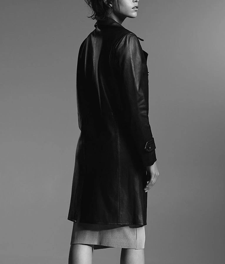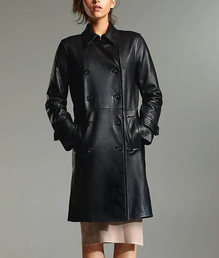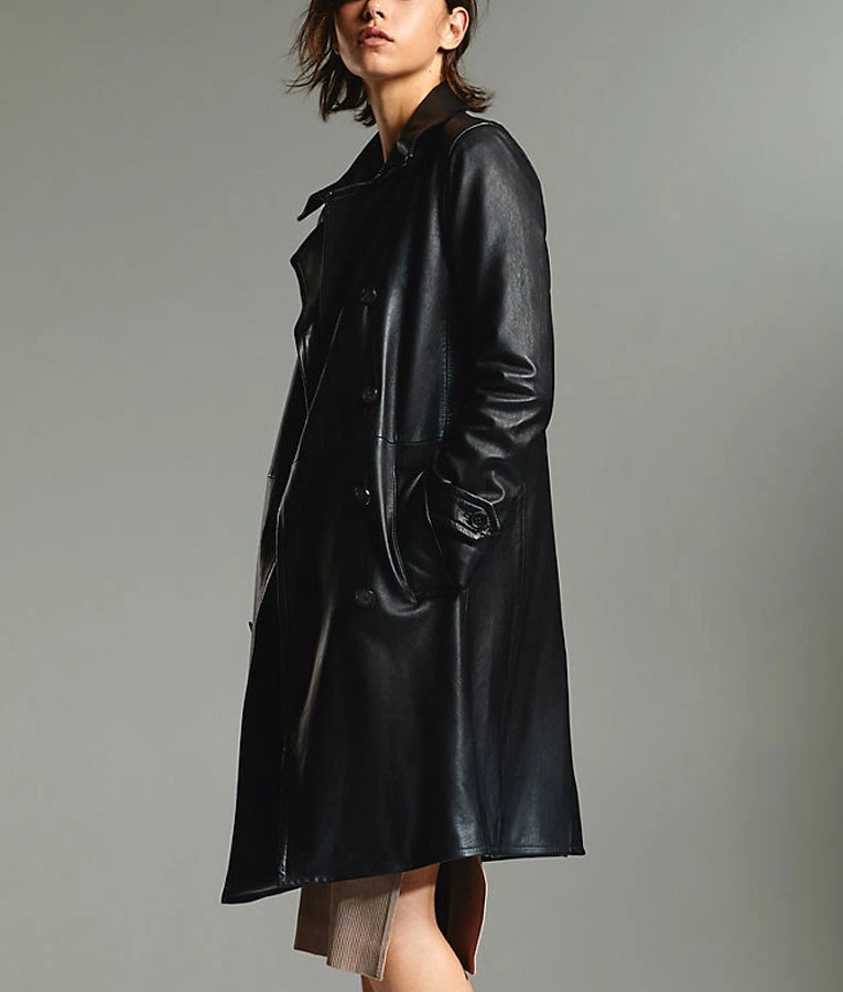 Arrow S08 Dinah Drake Trench Coat is curated of quality leather with viscose lining internally along with lapel collar, zipper closure, button cuffs, and two-sided pockets. It is among one of the most beautiful coats of the store. Look prettier in this black coat like Juliana by ordering it now