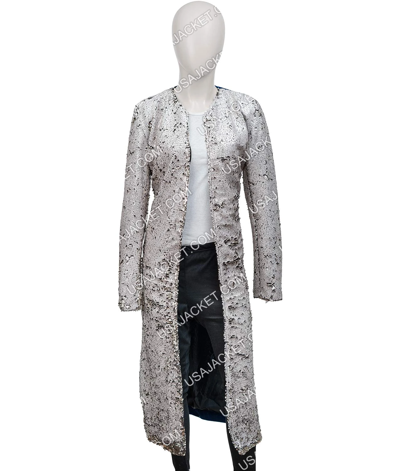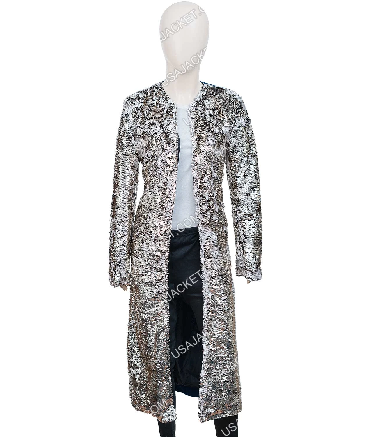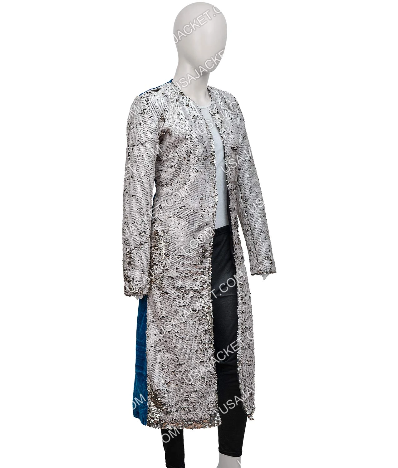 The Harley Quinn Margot Robbie Birds Of Prey Sequin Long Trench Duster Coat is made from two fabrics. Apart from the lining inside to provide you with comfort, the texture of velvet and glimmer of sequin will make this look striking. This has one inside pocket, a round neck collar, open hem cuffs, and a front open style to match the original outerwear from the film.