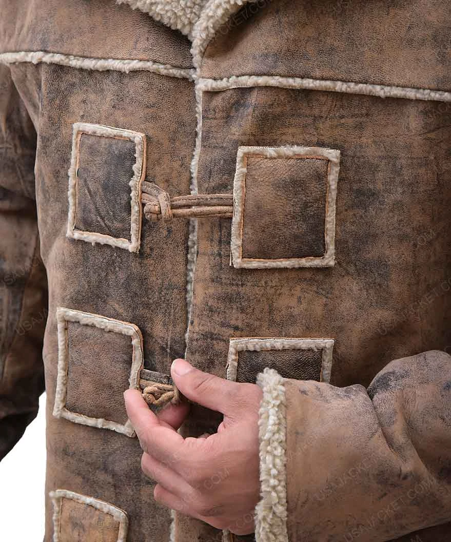 Hell on Wheels Cullen Leather Coat has been put together from suede leather material, including viscose lining and hemline on borders. Front is shearling faux collar and buttoned closing while sleeves are with open hem shearling faux material. This coat is a best thing to wear when the temperature is below – 0°C. This coat will make you spend your winters warm and joyful.