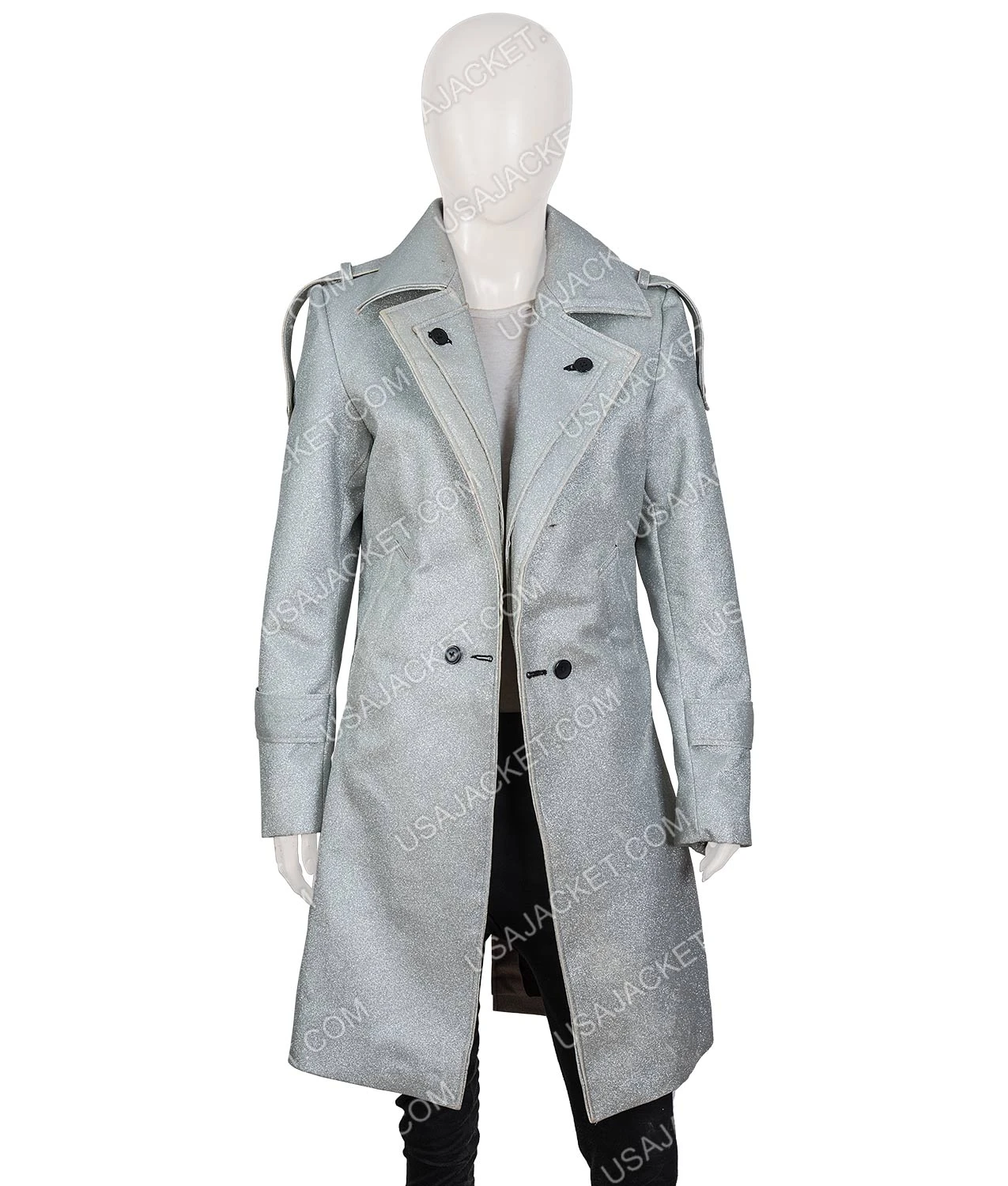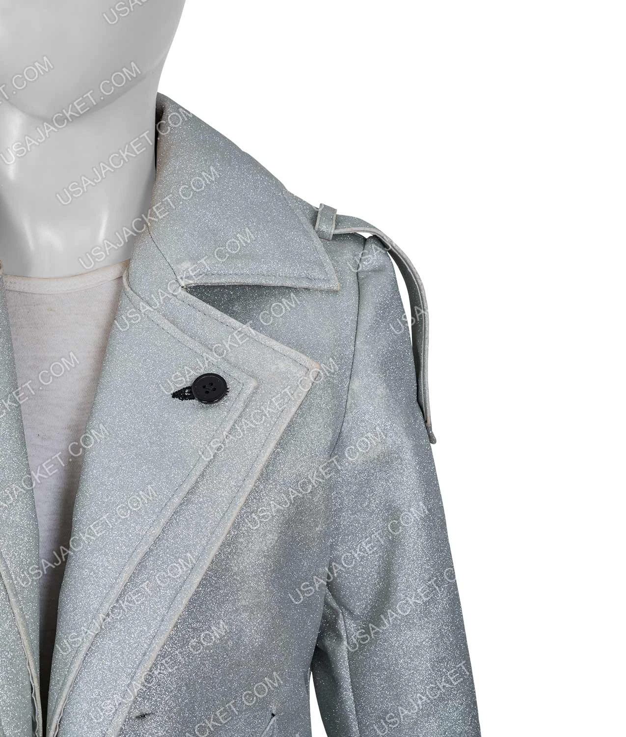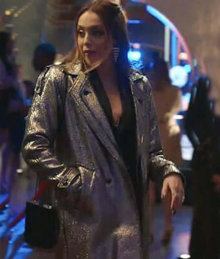Dynasty S03 Fallon Carrington Silver Metallic Coat is of faux leather, with inner delicate viscose lining, and lapel style collar. The button-front style closure belted cuffs, and two side pockets make this outfit further advanced in quality and reliability. Order it now by adding it to the cart before it is out of stock. Hurry up!