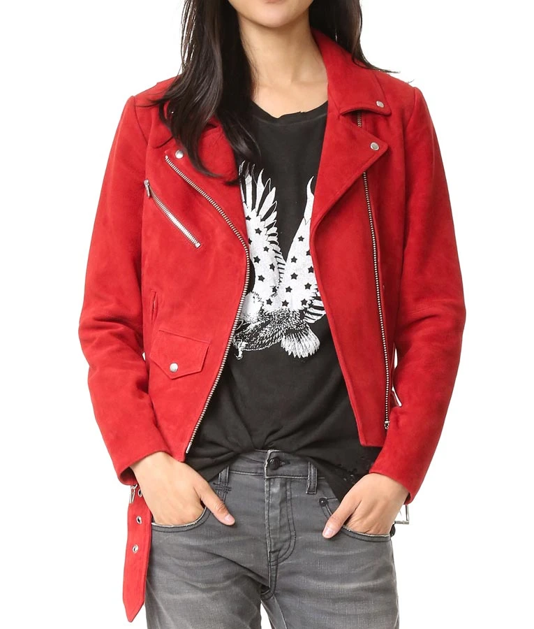 Emma Swan Jennifer Morrison Once Upon A Time Suede Red Biker Jacket