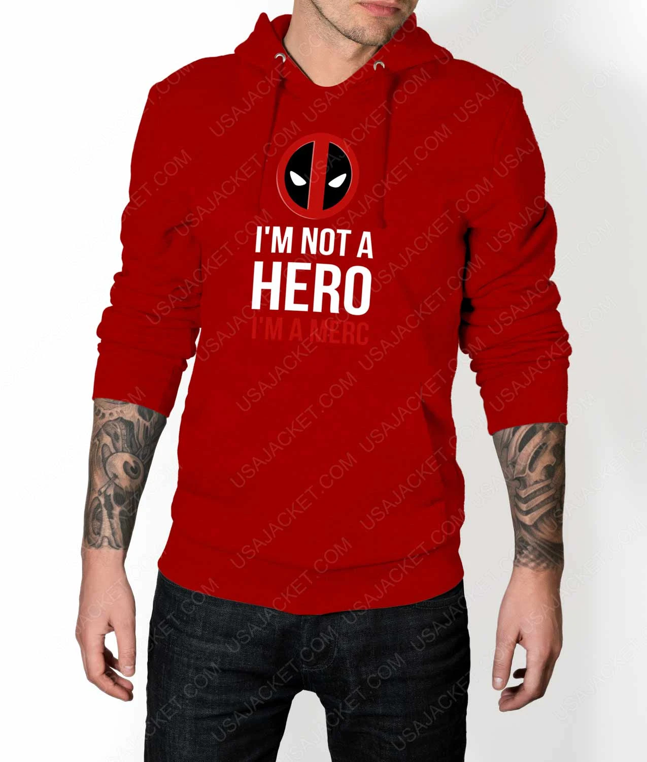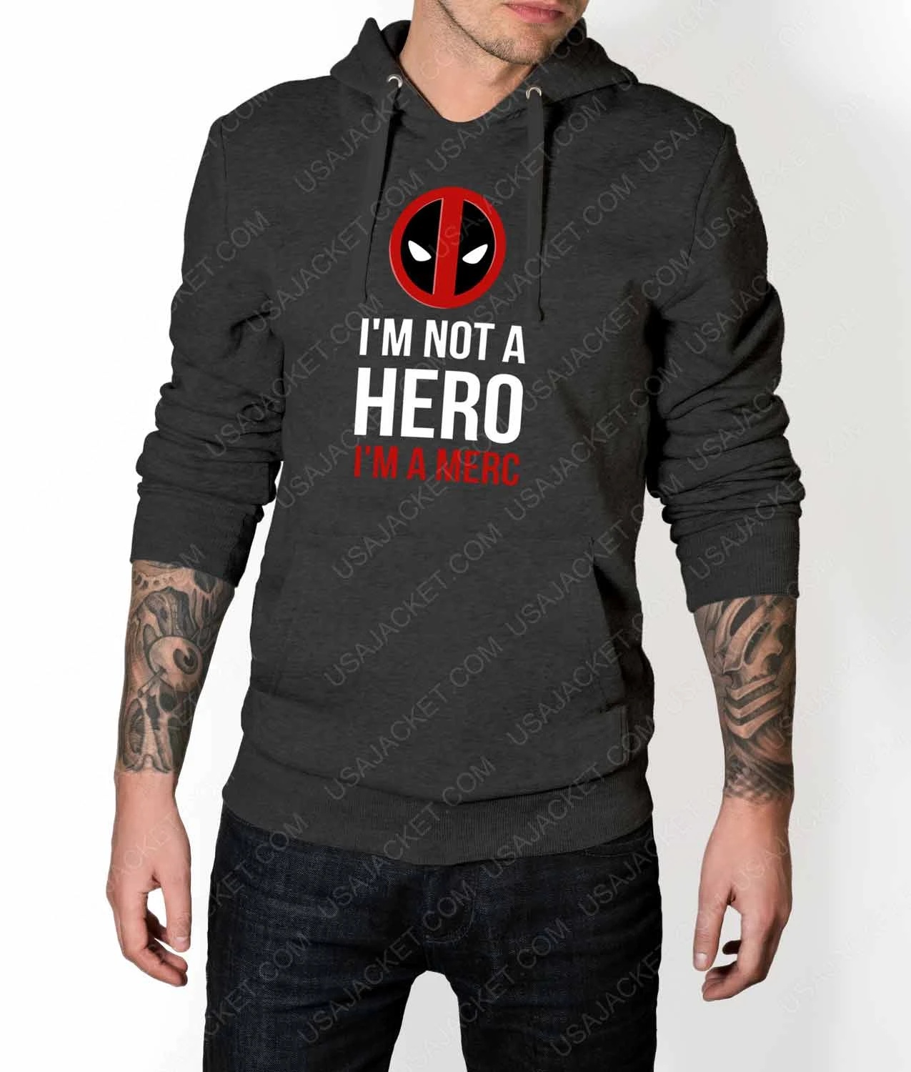 The hilarious superhero admits that he ain’t anything special when it comes to strengths and abilities. According to his professional portfolio, he’s a mercenary readily engaged in babbling mouth and gunfire fights. Exactly what’s highlighted on this cotton-polyester hoodie illustrating “I’m not a HERO I’m a Merc.’