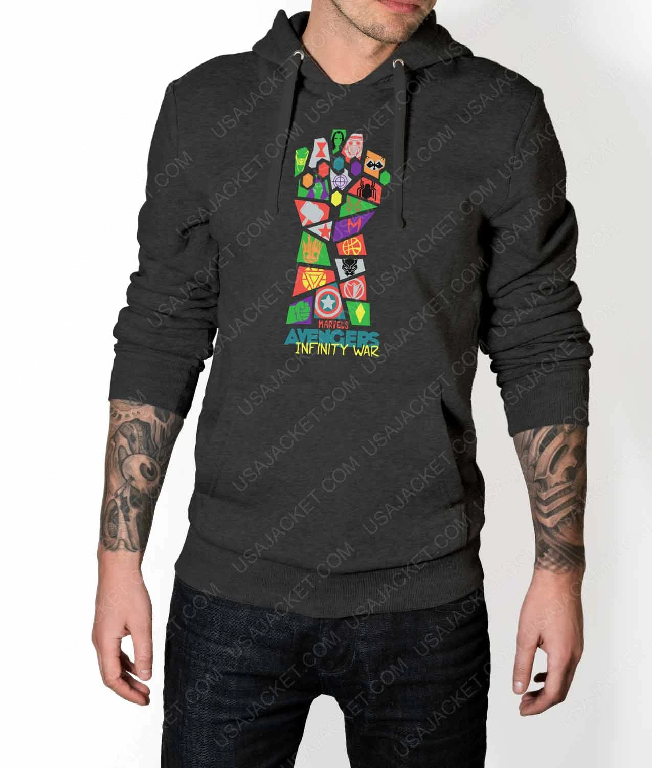 Traditionally African cultured superhero symbolic handful punch-up label together with the Avengers Infinity War text logo underneath, this hoodie is very high-spirited and high quality at the same time. A pull over hood collar and two pockets are the generous aspects this supple wear has to offer.