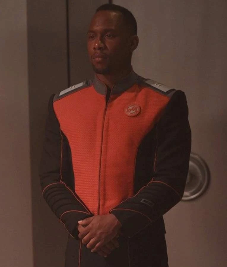 Right now we are beholding a fine cotton blend uniform of Lieutenant J Lee that is finely ingrained with a mesh intrigue up front. A full-bodied swanker that will make you feel a remarkable cosmic ritziness when you don this up. An erect collar is tampered in to produce an ostentatious effect to this splendid Orville J. Lee Jacket. The black and red shades are kept eerie gloomy to offer an incredibly weird effect to it. Calculate stitching performed over this outfit makes the design feel compact and classy at the same time. Overall, the attire is made neat and tidy along with an impressive integration to keep it possibly as close to the original