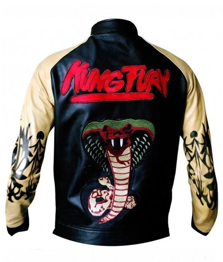 The jacket is prepared with genuine leather with inside viscose lining that will surely allow you to use it for a long time period. The features of the attire include stand up collar with front zipper closure and you will also find open hem cuffs that will give you classy look. In the two waist pockets, you can keep your valuables secure in it. Check the Kung Fury Cobra on the back of the jacket that will increase the charm of your look. So, what are you waiting? just have it now.