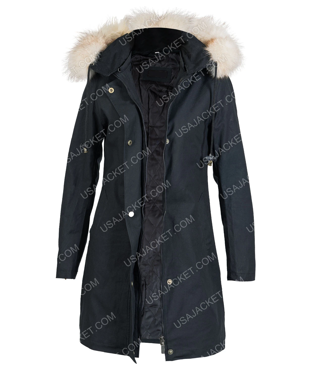 Let It Snow Isabela Moner Coat with Hood is made up of cotton and from the inner side viscose lining cover, which gives you warmth in the cold weather. The unique stand up collar with shearling-lined hood present on the jacket, which covers your head correctly in the cold season. The branded YKK zipper and flap snap fastening closure easy to close. Full sleeves with open hem cuffs cover you adequately. Two welted waists pockets given, so you can quickly warm your hands. The jacket is grey, which gives you an attractive look.