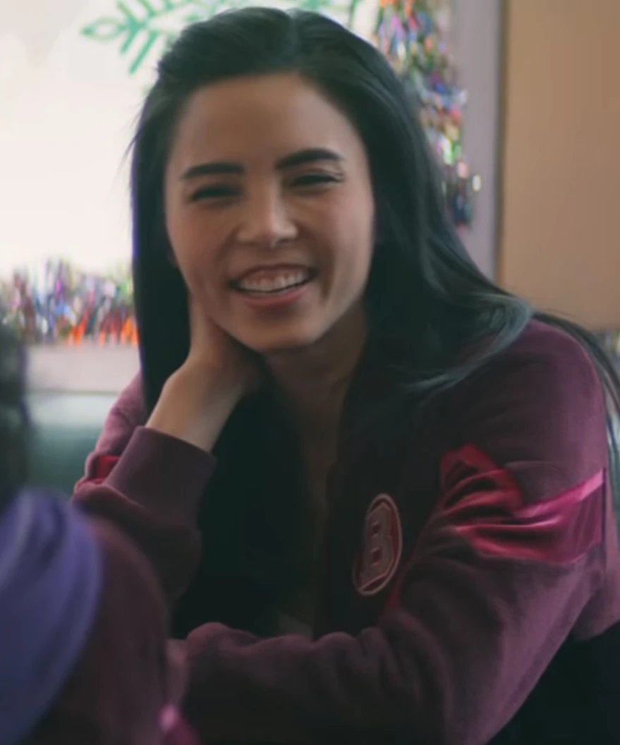 This jacket is taken from the actress Anna Akana she plays the role of Kerry in the Let it snow Movie. In this movie, she is a closeted cheerleader who frequents Waffle Town and Dorrie’s love interest.