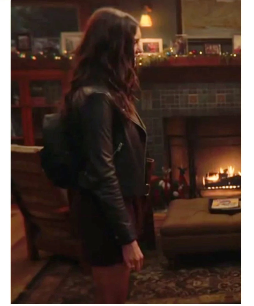 Nina Dobrev Love Hard Natalie Bauer Black Leather Jacket