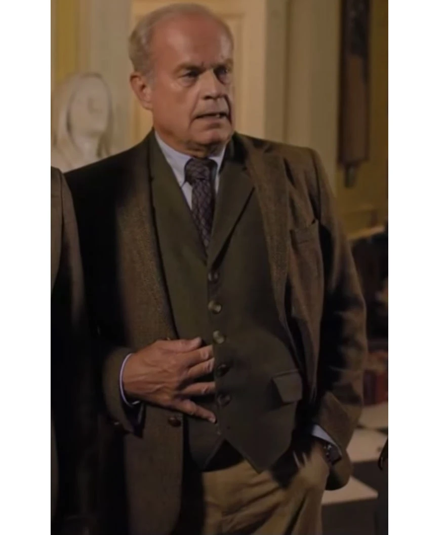 Kelsey Grammer Miss Willoughby and the Haunted Bookshop Robert Thompson Blazer is the first selection of customers like you who love to wear at your upcoming events and get-together. Are you interested in shopping for this Miss Willoughby and the Haunted Bookshop Robert Thompson Blazer? This beige outfit has a unique wool blend, viscose interlining, a lapel style collar, button front style closure, button cuffs, one front chest, and two side pockets. Hurry up! Order it now before it is out of a sale.