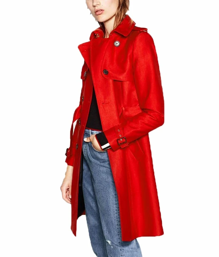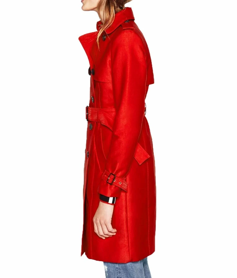 Wool blend fabric is the main attraction of the Riverdale Polly Cooper Tiera Skovbye Red Double Breasted Trench Coat. And, as the name states, it is a double-breasted style outerwear that has buttons for the closure. A belt is also featured to make the coat accurately fit your body, even if you decide to tie it instead of buckling it. There are two pockets to help you keep your things safe and secure.