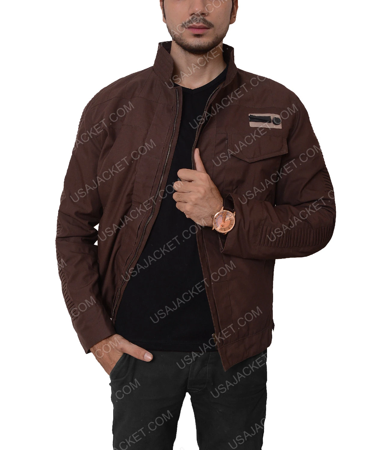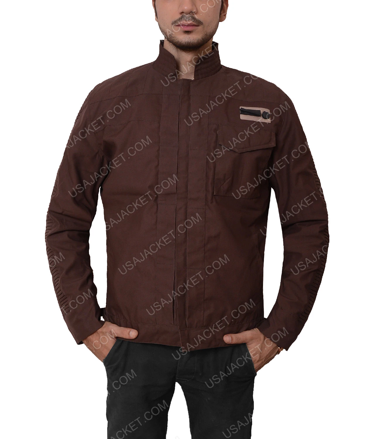 The Jacket is fabricated with the pure cotton material which is light in weight. Rogue One Captain Cassian Andor Jacket is intended with a stand-up collar and front zip closure that looks cool for casual wearing. It has two flap pockets and two hidden inside pockets to keep the valuable things safe. The Star Wars Captain Cassian Andor Jacket is offered in brown in color with long sleeves and various sizes. Now you can grab the highly wanted exclusive jacket, with top quality and attractive features with a laid back touch.