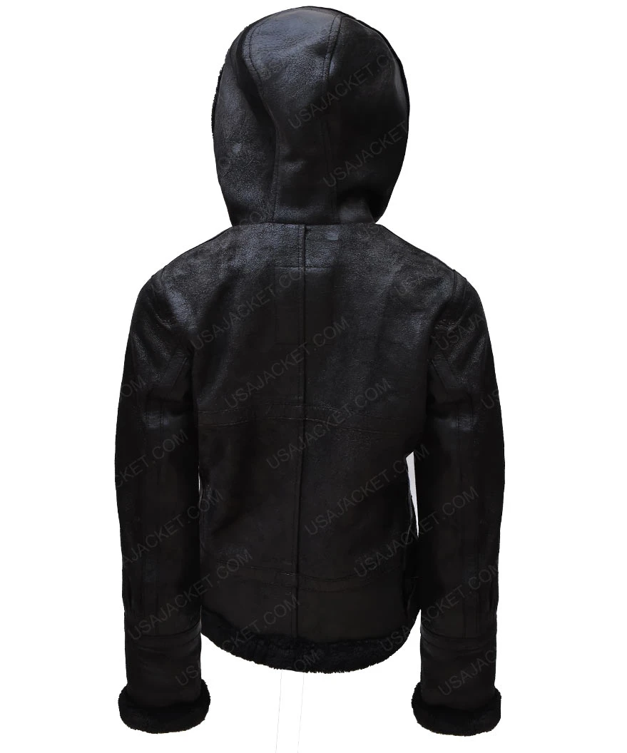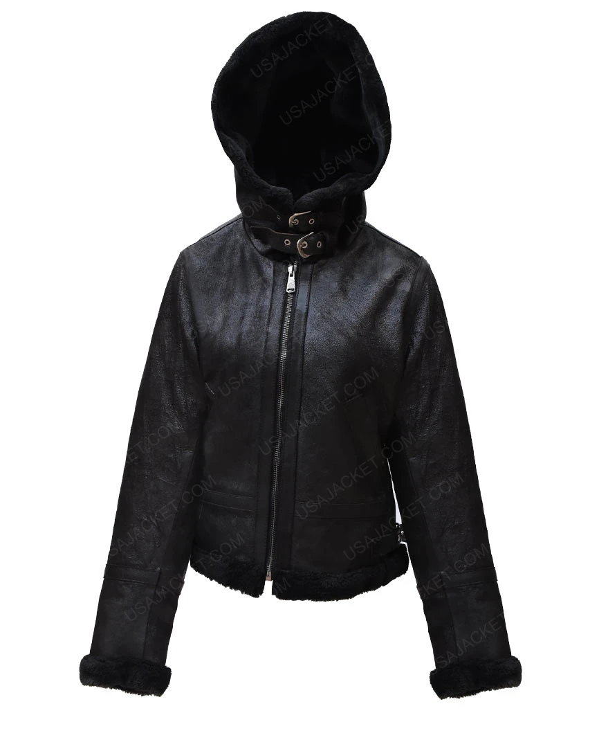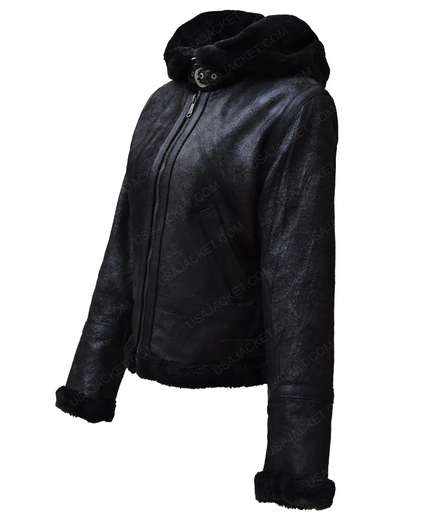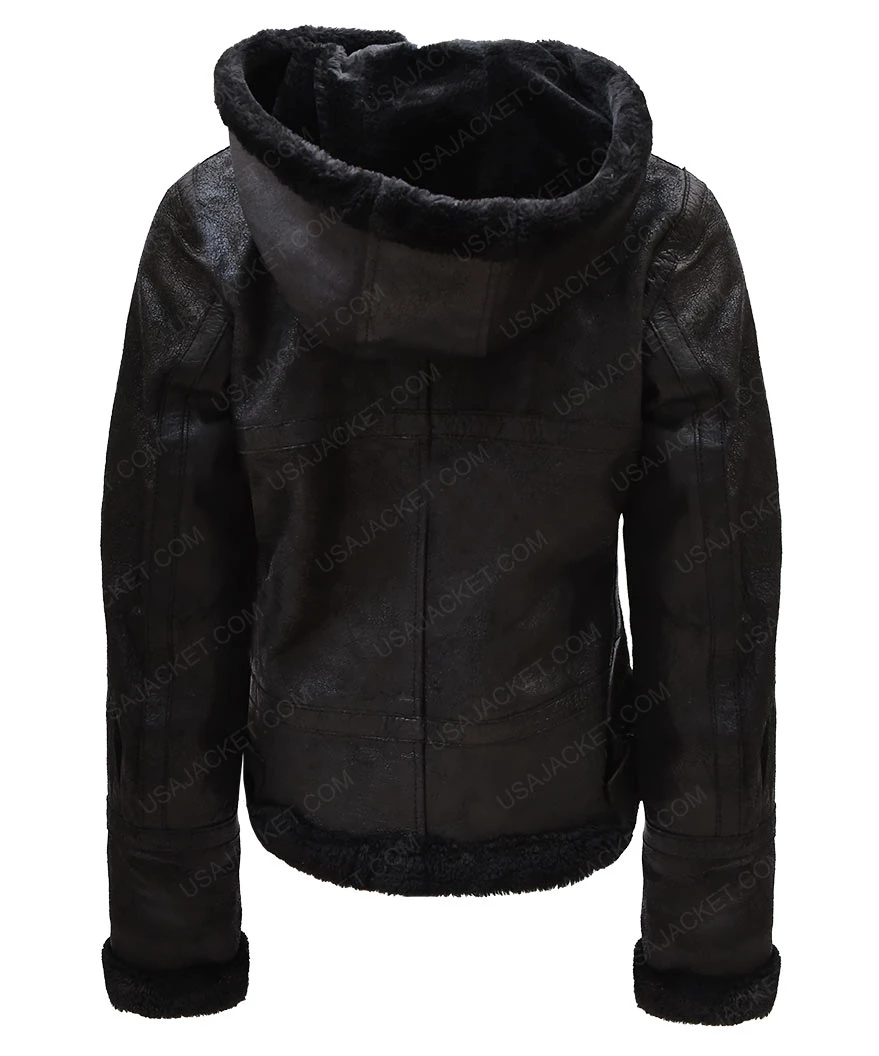 It is delicately fashioned with genuine leather &confined with soft viscose lining towards inner side. This Womens Black Fur Hooded Jacket has an artistic shearling collar embroidered and has full front zipper corsage defined. While the creative stitched designing on back makes this outwear class apart from rest of the others.