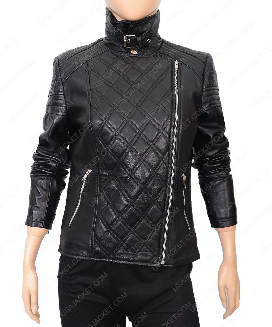 Here comes the wool instilled wardrobe leather jacket for the ladies. The perfect epitome for the females who believe in the classy trends and occasions. Coming in black, ladies with a selfless personality are gonna fell in love with this lovely leather experience. Adding more to the garment refinements, the notch collar is added with the puffed up wool together with the wool fabric added to the cuffs and hemline as well. Additionally, this black colored women biker jacket is meticulously ensemble with the exemplary quilt designing performed with the first-rate threads. This jacket is tailored with exquisite embellishments all over amid being one of the lady wears. Also, two zipper pockets are also added to this futuristic fabric charisma. Comprehensively, a win-win wardrobe merchandise that will never fail your get-up elucidating expectations.